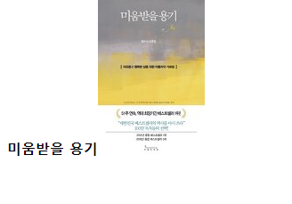 123456789101112131415161718192021222324252627<!DOCTYPE html><html lang="en"><head><meta charset="UTF-8"><meta name="viewport" content="width=device-width, initial-scale=1.0"><meta http-equiv="X-UA-Compatible" content="ie=edge"><title>Document</title></head><body><script src="https://code.jquery.com/jquery-3.4.1.js"integrity="sha256-WpOohJOqMqqyKL9FccASB9O0KwACQJpFTUBLTYOVvVU=" crossorigin="anonymous"></script><p></p><script>$.ajax({method: "GET",url: "https://dapi.kakao.com/v3/search/book?target=title",data: { query : "미움받을 용기" },headers : {Authorization: "KakaoAK"}}).done(function (msg) {$( "p" ).append( "<strong>" + msg.documents[0].title + "</strong>" );$( "p" ).append( "<img src='" + msg.documents[0].thumbnail + "'/>" );});</script></body></html>위와 같이 .done 안에 위의 내용을 추가해주면 아래와 같은 결과를 볼 수 있다.