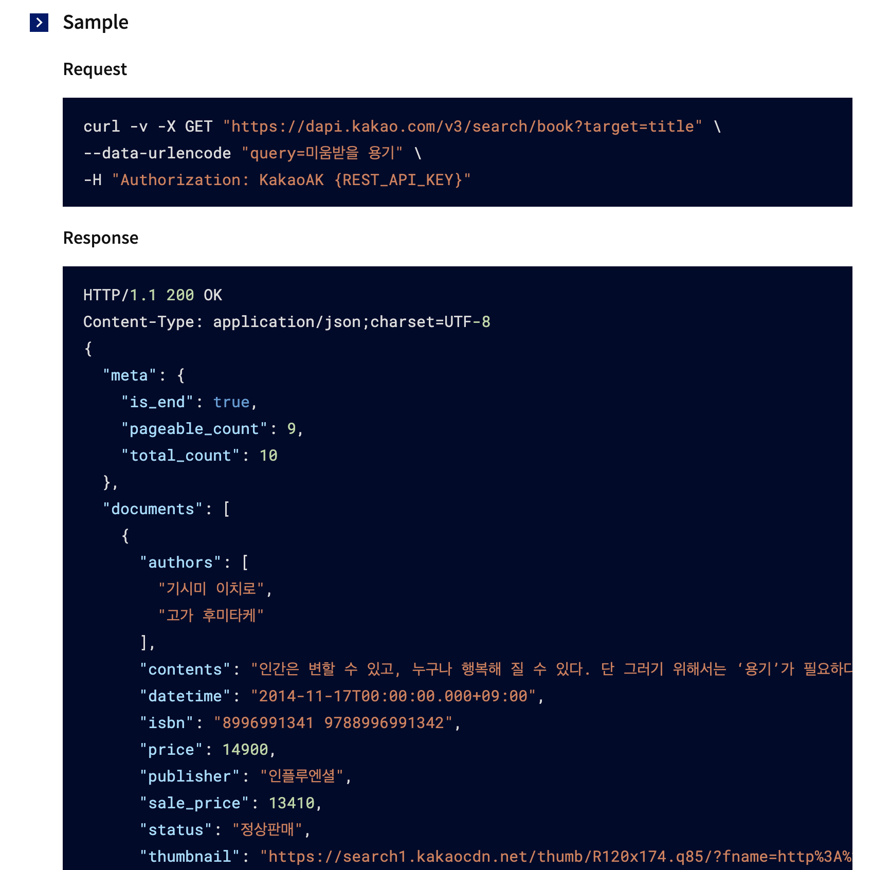 이번 글에서는 NodeJS를 이용해서 KAKAO OPEN 책 검색 API를 요청해보는 예제를 진행해보려 한다.