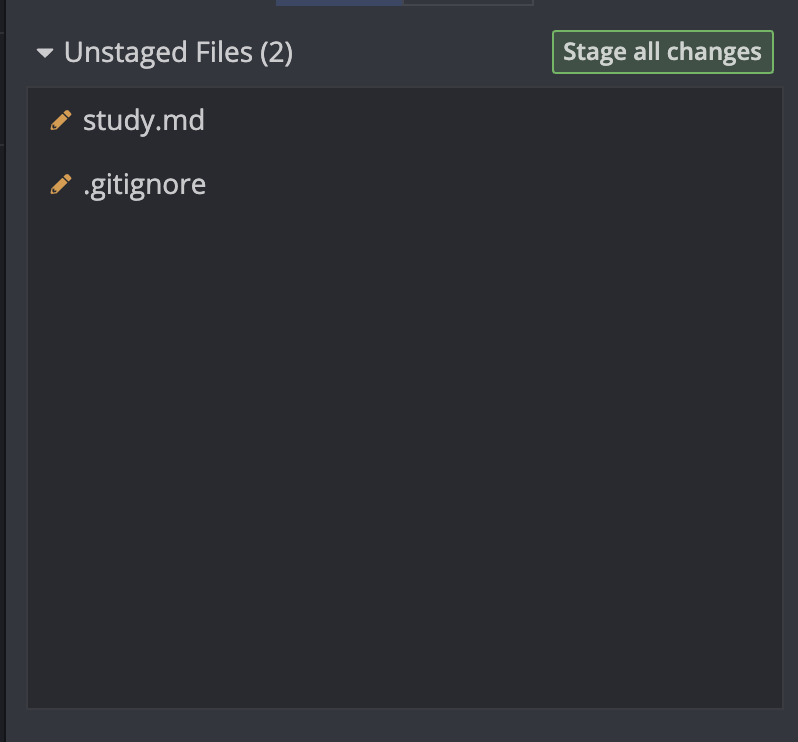 그리고 study.md 파일을 간단하게 수정한 후에 다시 GitKraken을 보면 아래와 같이 .gitignore가 적용이 되지 않은 것을 알 수 있다.