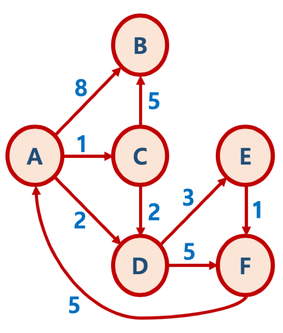 - 계산하더라도 A - F 거리가 6인 루트보다 무조건 더 긴거리가 나올 수 밖에 없음