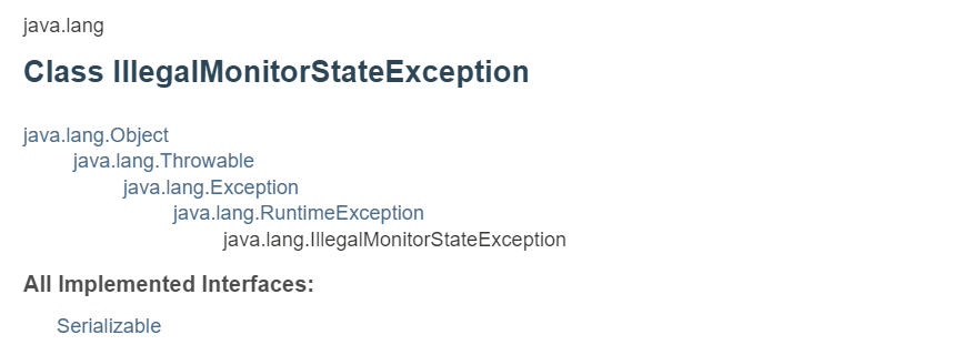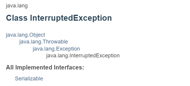 위처럼 RuntimeException 하위 클래스는 아니고 Exception 하위클래스인 InterruptedException 클래스는 반드시 예외처리를 해야 한다는 것을 알 수 있다. 이번엔 InterruptedException이 발생할 수 있는 메소드를 한번 보자.
