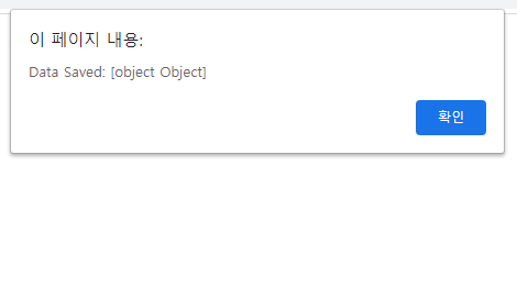 위의 코드를 실행해보면 위와 같이 alert 함수가 실행이 되었고 올바르게 API의 Response를 받았다는 것을 알 수 있다.