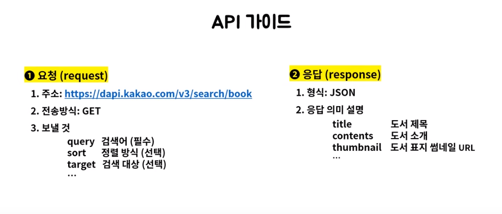 하지만 요청과 응답을 하기 위해서는 정해진 형식이 필요하다. 그것을 API 가이드 라고 한다.