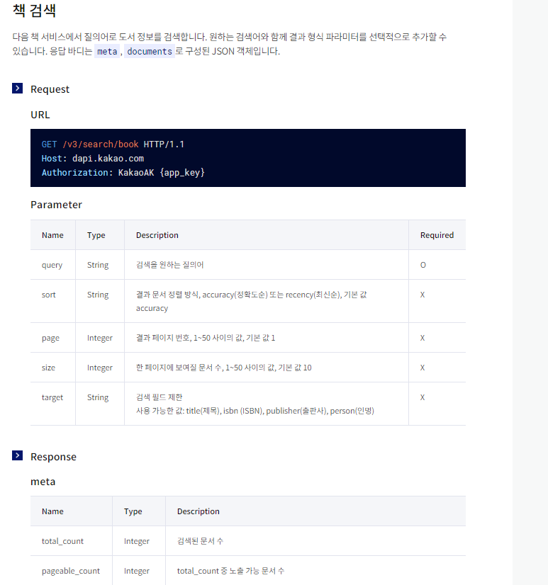 간단한 카카오 책 검색 기능을 구현하는 예제를 해보려 한다.