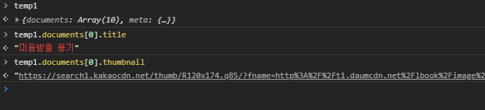 따라서 위의 처럼 JSON 형식의 데이터를 뽑아내면 잘 나오는 것을 확인할 수 있다. 그리고 JQuery와 html을 연결하는 것을 따라해서 p태그 뒤에 title과 thumbnail을 추가해보려 한다.