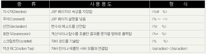 위의 표는 JSP 기본태그에 대한 설명인데 많이 쓰다보면 외워지기도 하고 표안에 내용을 읽어보면서 의미를 파악하고 많이 써보면서 익혀보면 될 것 같다. 따라서 <% %> 안에 코드를 작성하면 서버에서도 자바코드로 인식을 하게 된다.
