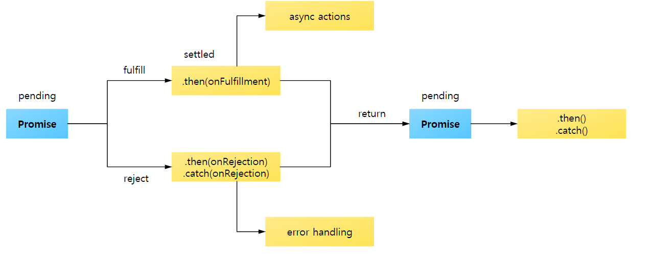 - Fulfiled(이행) : 비동기 처리가 완료되어 프로미스가 결과 값을 반환해준 상태