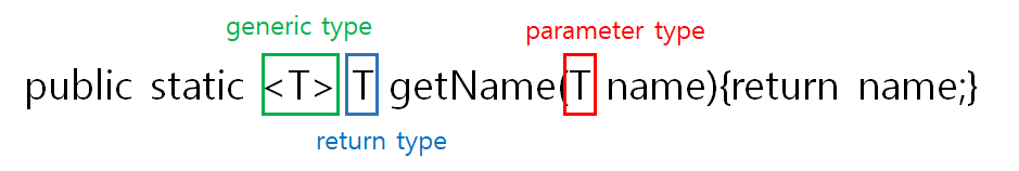 - 2번의 경우 클래스의 제너릭 타입 T와 제너릭 메소드 타입 T는 다르다.