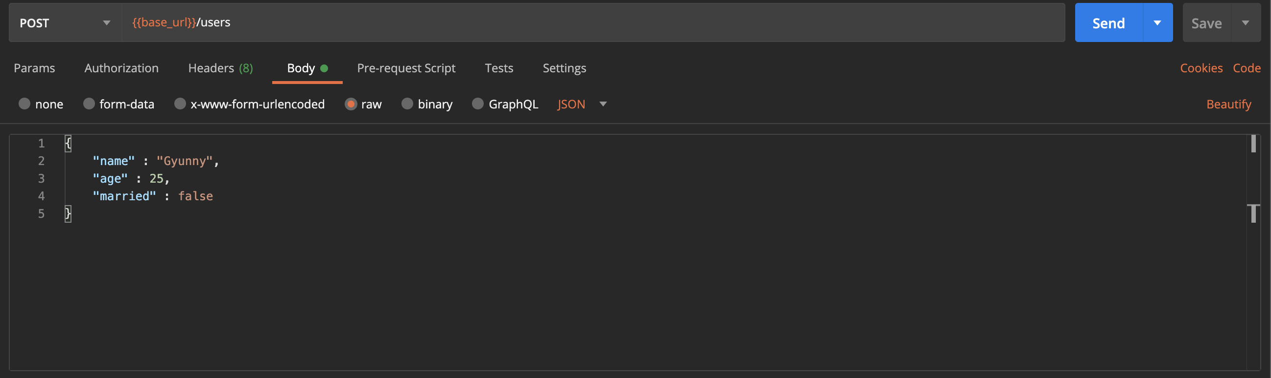 아래와 같이 포스트맨에서 입력했던 값들이 제대로 들어간 것을 확인할 수 있다.