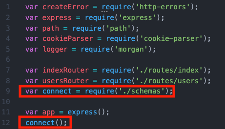 그리고 제일 핵심이라고 할 수 있는 app.js에 위와 같이 코드를 작성해서 스키마를 연결 시키면 된다.