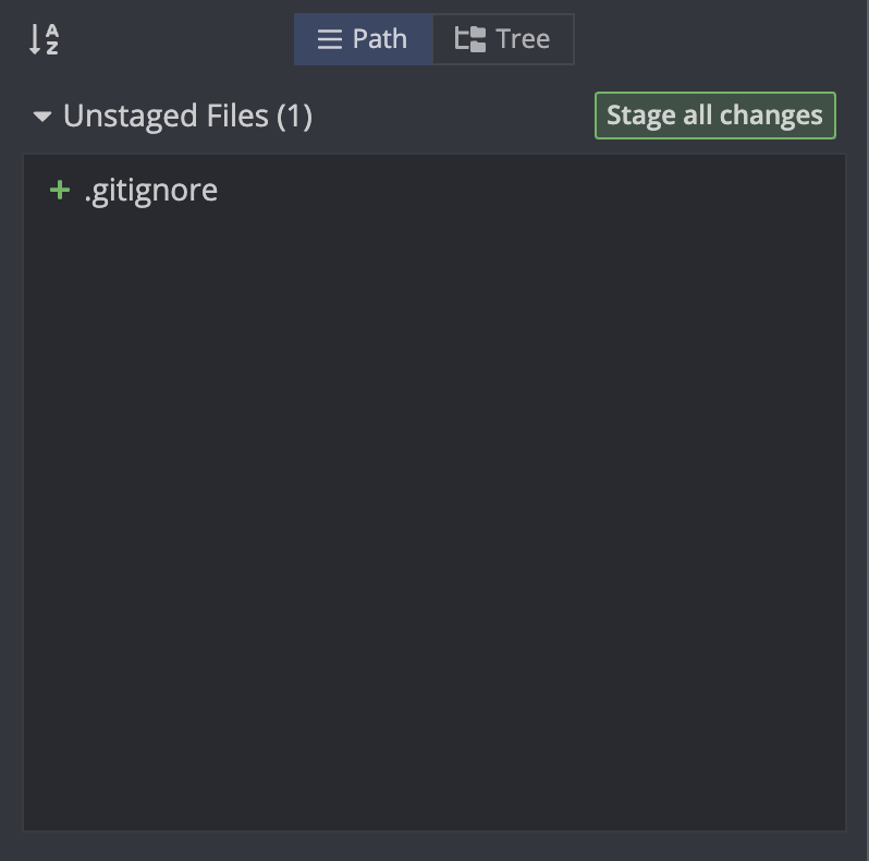 GitKraken을 이용해서 확인해보면 test.md 파일이 추적받지 않는 것을 볼 수 있다. (새로 만든 .gitignore 파일만이 추적을 받고 있다)