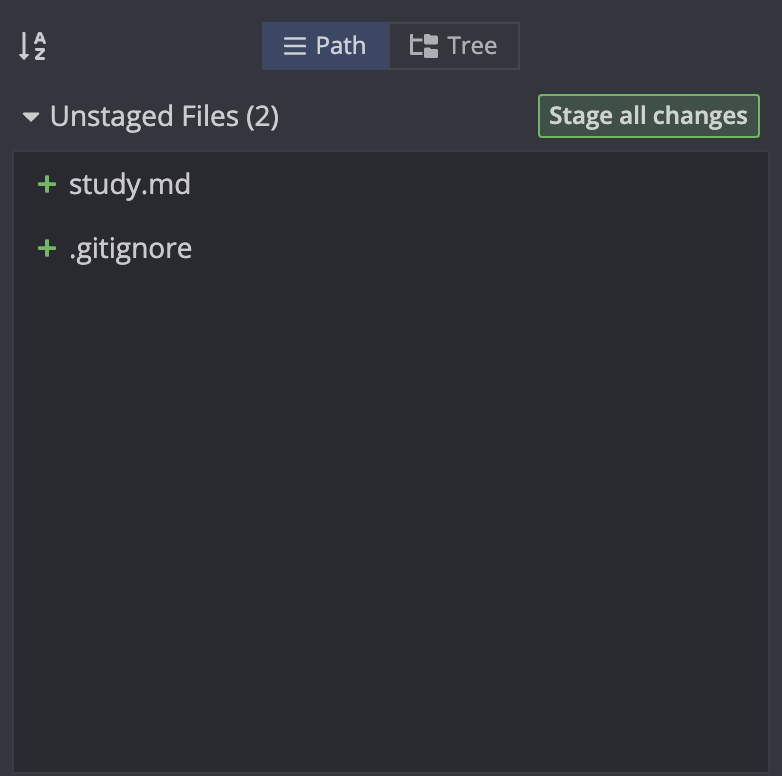그리고 study.md 파일을 간단하게 수정한 후에 다시 GitKraken을 보면 아래와 같이 .gitignore가 적용이 되지 않은 것을 알 수 있다.