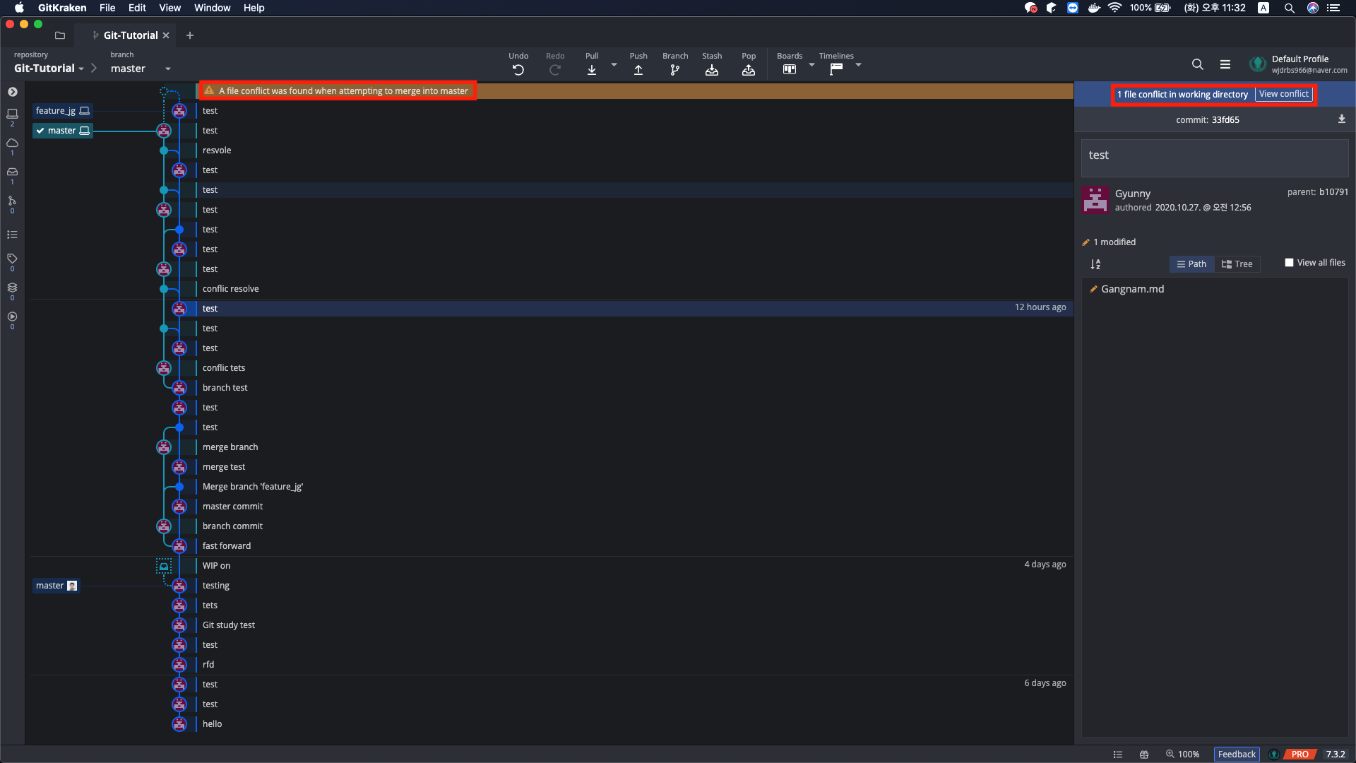 2. GitKraken에서 충돌 해결