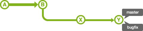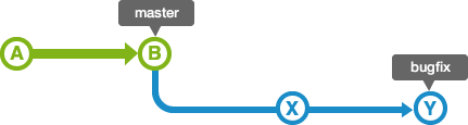 출처: https://backlog.com/git-tutorial/kr/stepup/stepup1_4.html 현재 상황은 master 브랜치에서 뻗어나온 bugfix 브랜치에서 X, Y 커밋을 한 상태이다.