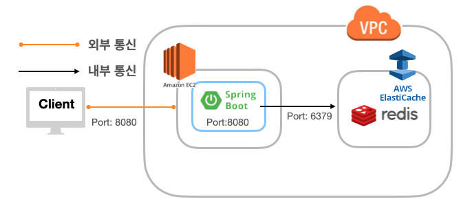 Redis-cli를 사용하여ElastiCache를 접속해서 간단한 테스트를 해보았습니다. 참고로 ElastiCache는 Local에서 접속이 불가능합니다! 그래서 EC2에서 접속 테스트를 해봐야 합니다.Spring Boot에서 Redis 간단한 실습간단하게 아키텍쳐로 표현하면 아래와 같습니다.