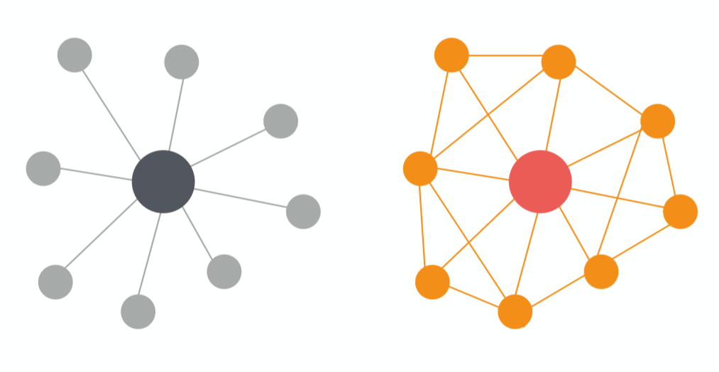 간단히 그래프로 비유를 해보자. SVN 은 왼쪽처럼 중앙 집중형 구조를 가지고, Git 은 오른쪽처럼 그물망 모양을 가진다고 할 수 있다. 그런데 SVN 은 중앙 저장소에 집중되어 있는 구조라 중앙저장소에 문제가 생겼을 경우, 따로 백업을 해두지 않는 이상 복구를 하기가 좀 힘들다. 그리고 저장소를 공유하여 사용하기 때문에, 동시에 여러명이서 개발을 하기에 어려움이 있다.