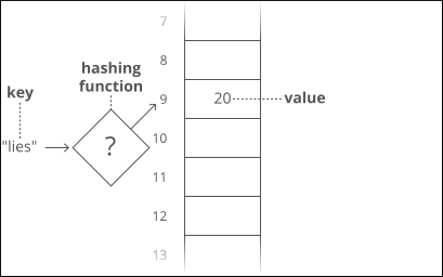 그러나 현실적으로는 탐색 키들이 문자열이거나 매우 큰 숫자이기 때문에 탐색 키를 직접 배열의 인덱스로 사용하기에는 무리가 있으므로 각 탐색 키를 작은 정수로 사상(mapping)시키는 어떤 함수가 필요하다. 해싱에서는 자료를 저장하는데 배열을 사용한다. 배열은 단점도 있지만 만약 원하는 항목이 들어 있는 위치를 알고 있다면 매우 빠르게 자료를 삽입하거나 꺼낼 수 있다.