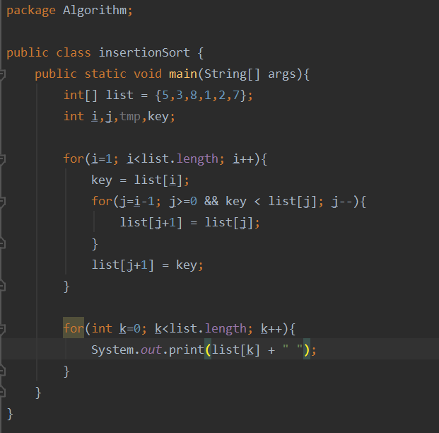 출처 : https://gmlwjd9405.github.io/2018/05/06/algorithm-insertion-sort.html 삽입 정렬은 처음에 2번 째 위치의 값을 key로 정해서 시작한다. key 값을 자신의 왼쪽에 놓인 것들과 하나씩 비교하면서 자신의 위치를 찾으면 그 자리의 있는 것과 자리를 바꾸게 된다. 자바로 삽입 정렬을 구현해보자.