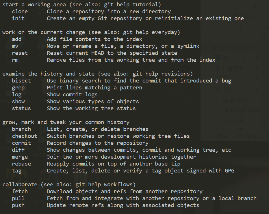 예를들면 이런식으로 git 명령어들은 비슷비슷 하다고 한다.